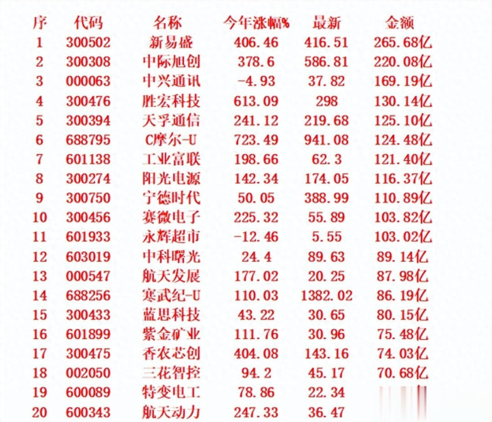 1 300502 新易盛 406.46